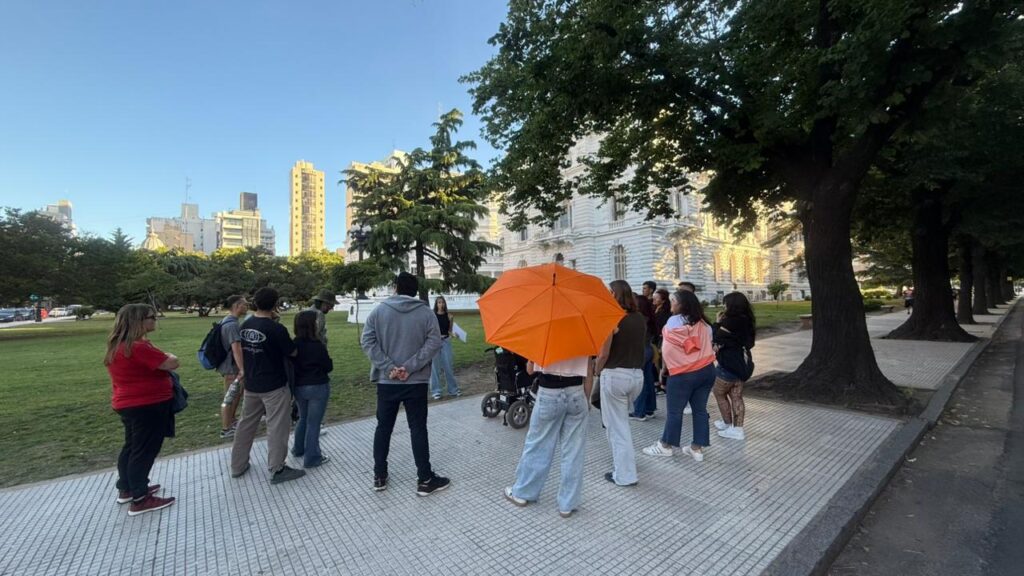 Andar Urbano puede seguirse en Instagram como @andarurbanotour, donde anuncian fechas, propuestas y actividades. “Si ven un paraguas naranja en La Plata, ese es nuestro guía”, bromeó Strilinsky.