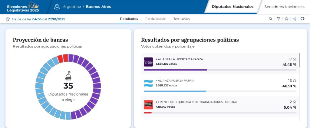 En la provincia de Buenos Aires, los electores eligieron a sus 35 representantes para integrar a partir de diciembre en la Cámara baja del Congreso de la Nación. Este domingo 26 de octubre se llevó adelante una nueva elección legislativa en todo el territorio argentino.