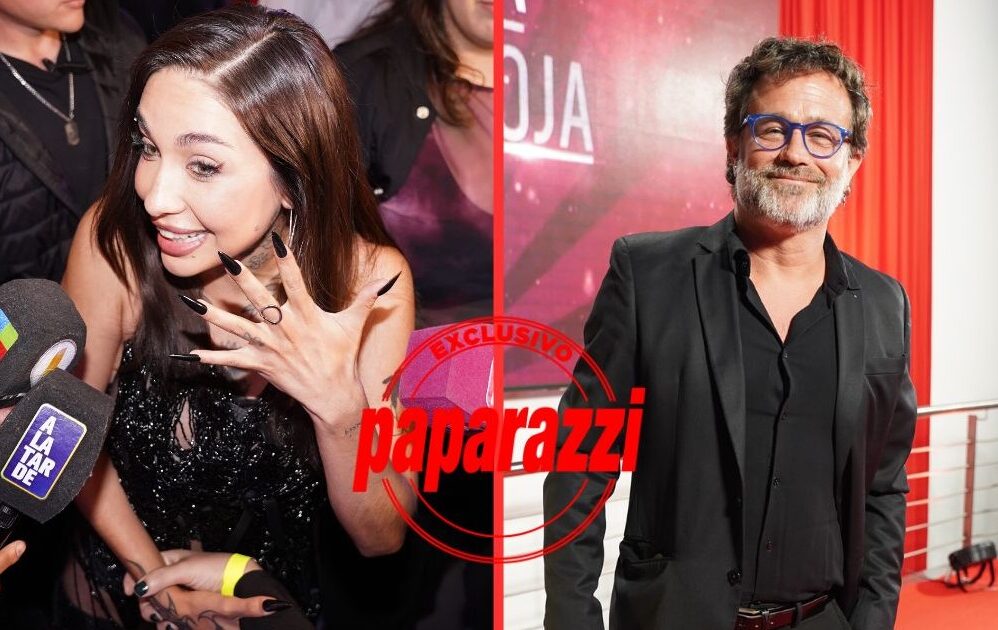– Griselda Siciliani y Luciano Castro, que llegaron juntos; él con un traje negro con remera a tono y ella con un vestido rojo de satén, hombreras marcadas y falda midi.