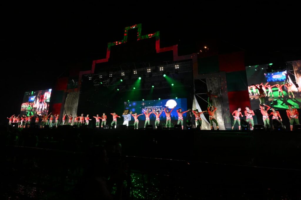 El evento, de alta producción, combinó música, danza y color con más de cien artistas en escena. Hubo momentos destacados como Papá Noel sobrevolando al público y el cierre musical a cargo de la joven cantante Ángela Torres. La noche incluyó además un espectáculo de drones que proyectó en el cielo figuras vinculadas a la Navidad y a la identidad e historia del municipio —la Sagrada Familia, el tren Belgrano Norte, Papá Noel y un gran “Malvinas 30 Años”, entre otras—, que emocionaron a espectadores de todas las edades.