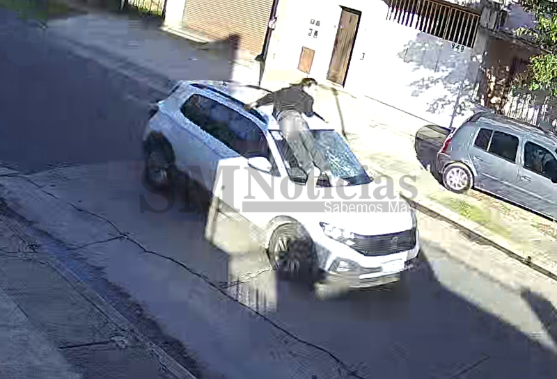 De acuerdo con videos aportados por privados y el Municipio, la víctima logró sujetarse del portaequipajes mientras la camioneta avanzaba en contramano por avenida Vergara.