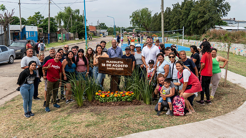 La plazoleta, situada sobre la calle Mendoza junto al arroyo Los Perros, incluye luminarias LED, veredas, mobiliario urbano, un mástil y tareas de parquización. Se habilitó además un sector para la práctica recreativa de vóley, ampliando las opciones de uso para vecinos de todas las edades.