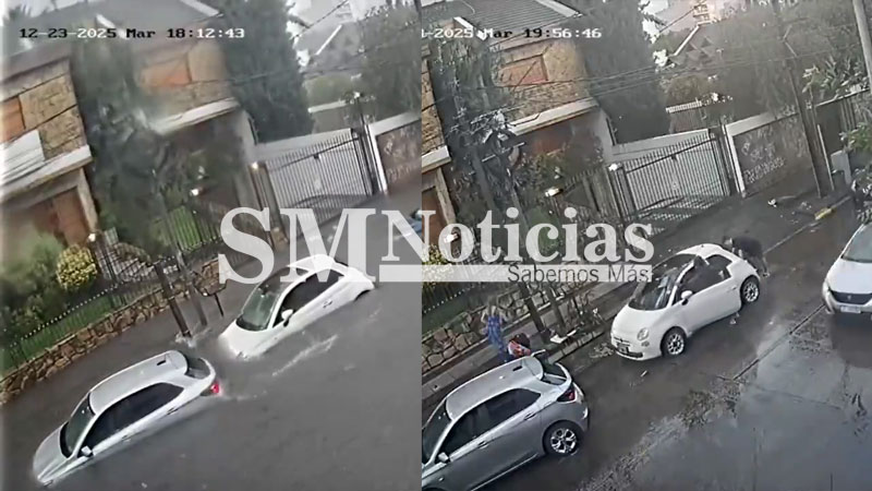 Entre los videos remitidos a la redacción de SM Noticias, uno de los más alarmantes muestra a un hombre aparentemente inconsciente sobre el techo de su automóvil, totalmente sumergido, en la intersección de Avenida Triunvirato y Juan Pablo II, en la frontera entre San Martín y Tres de Febrero.