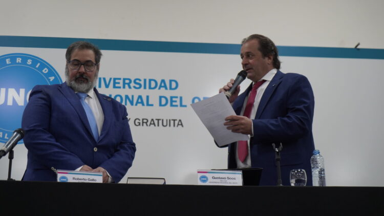 Por su parte, el nuevo rector Gustavo Soos destaco que asume con “alegria, responsabilidad y compromiso”, y reconocio la gestion realizada por Roberto Gallo, quien continuara acompanandolo como vicerrector. Senalo como objetivo garantizar una educacion publica, gratuita y de calidad para la region, con especial atencion a facilitar el acceso a quienes provienen de sectores mas humildes.