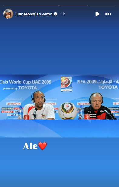 En esa misma linea, Juan Sebastian Veron, emblema y presidente del club, compartio tambien su recuerdo en redes sociales. Publico una imagen junto a Sabella durante una conferencia en el Mundial de Clubes 2009 y la acompano con un breve y sentido mensaje: “Ale”, junto a un corazon.