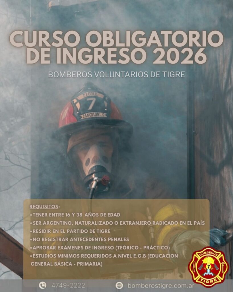 La Sociedad de Bomberos Voluntarios de Tigre abrió la inscripción para el Curso Obligatorio de Ingreso 2026, destinado a quienes quieran incorporarse como aspirantes al cuerpo activo de la institución.