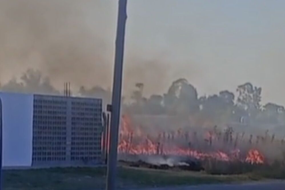 Un incendio afectó terrenos en Glew y dejó el área visiblemente dañada. Las imágenes del lugar muestran restos de vegetación y suelos quemados; la escena permaneció cubierta por humo durante algún tiempo después de sofocadas las llamas.