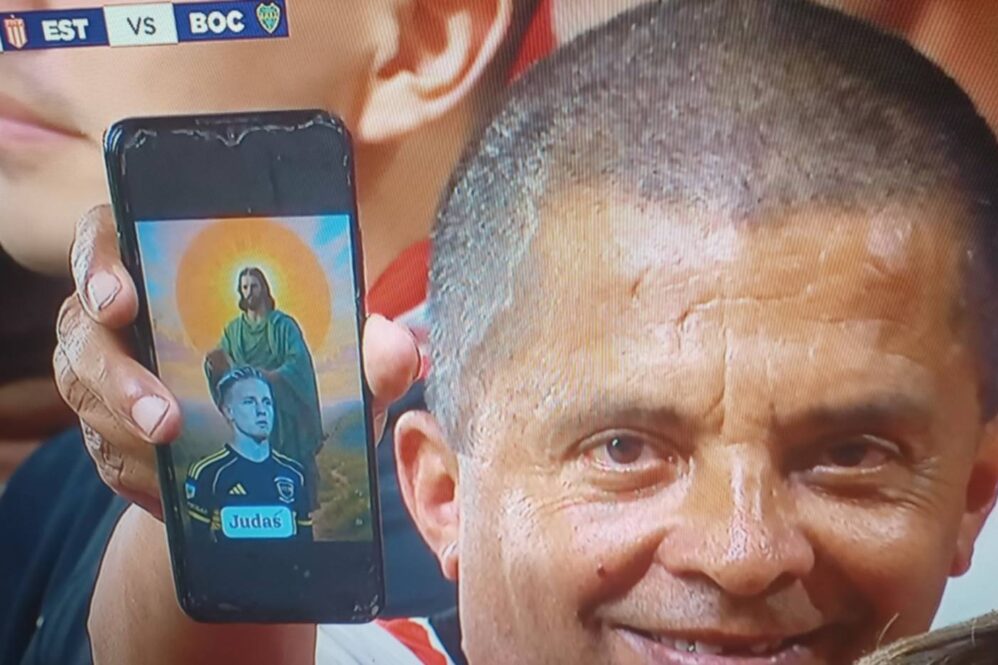 La partida de Santiago Ascacibar a Boca generó distintas reacciones entre los hinchas de Estudiantes: desde indiferencia hasta cánticos y muestras de rechazo más enérgicas. Uno de los espectadores llevó una estampa que mostraba al jugador apodado “Ruso” con la palabra “Judas”, en alusión a la traición bíblica; la cámara de televisión lo enfocó en primer plano mientras exhibía la imagen para manifestar su descontento.