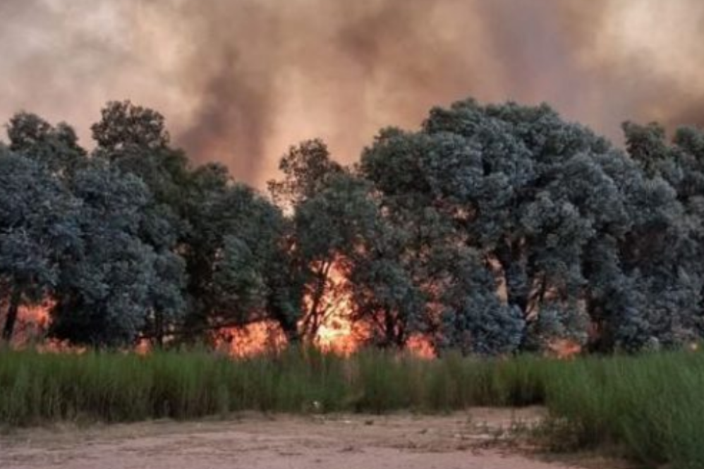 Incendio en pastizales de Ezeiza junto a la autopista Presidente Perón