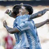 Travis también mostró su lado más informal con un conjunto deportivo gris claro de dos piezas: chaqueta con cremallera, pantalón holgado y camiseta blanca debajo, rematado por zapatillas en tonos blanco, gris y negro y un collar dorado. La pareja alternó con naturalidad entre estilos formales e informales.