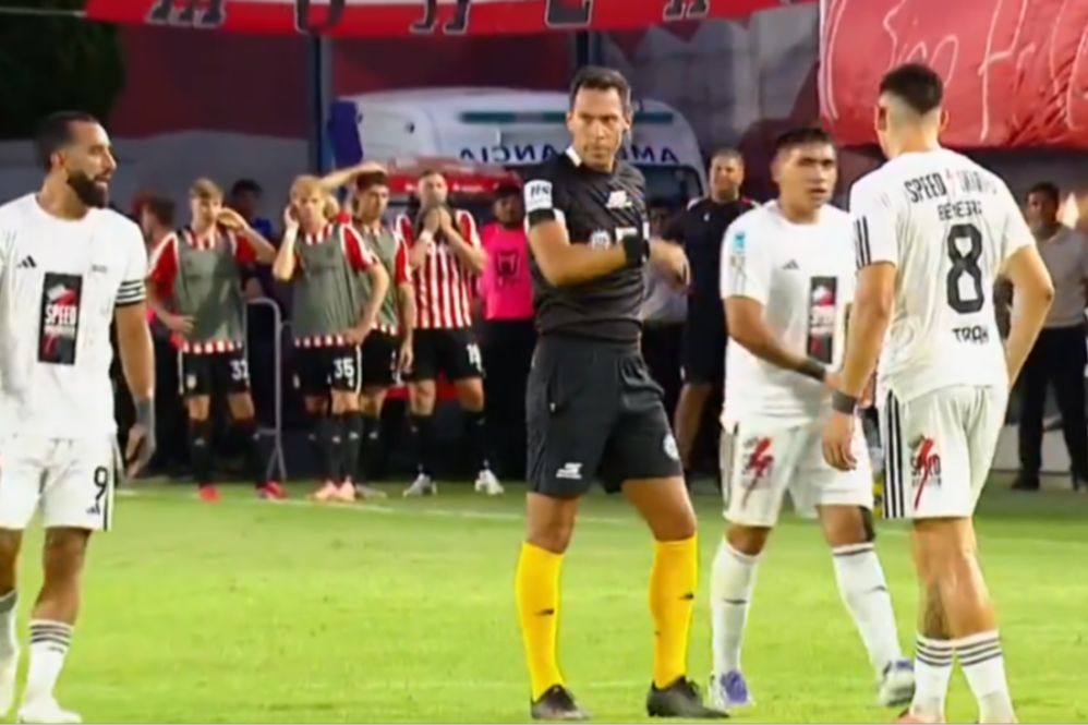 En el cierre del primer tiempo se produjo una triple revisión del VAR que terminó con la sanción de una falta de Tobio Burgos, algo que sorprendió a los espectadores en el estadio.