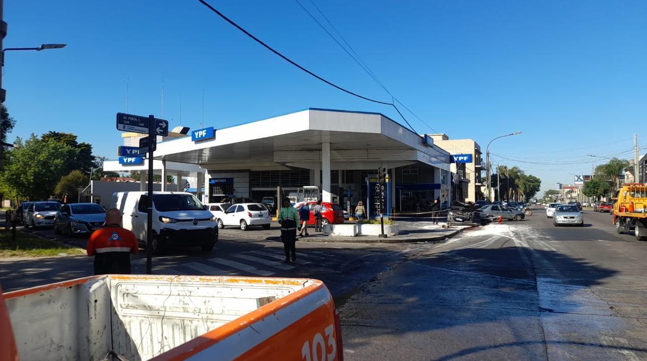 El hecho ocurrio a apenas una cuadra del lugar donde, la semana pasada, un camion y un automovil chocaron en la avenida Eva Peron y Lautaro. Ese choque provoco la rotura del tanque de combustible del camion y el derrame de aproximadamente 150 litros de gasoil.