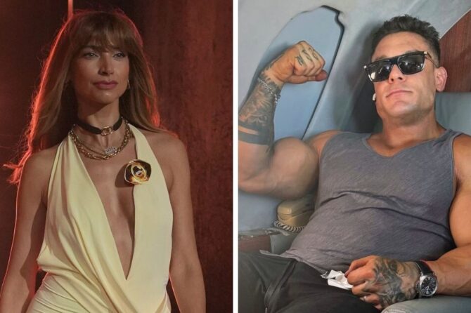 En cuanto a los looks, Martita lució un mini vestido negro con bordados y transparencias estratégicas, escote halter y efecto lencero, que combinó con botas negras de caña media y un maquillaje glam en tonos rosados; su peinado recogido dejó a la vista algunos tatuajes. Felipe optó por un conjunto sofisticado y con aire rockero: blazer negro con monograma de Gucci y pecho descubierto, collar con cruz, pantalón recto oscuro, zapatos clásicos y gafas de sol con cristales verdes que aportaron un toque excéntrico.