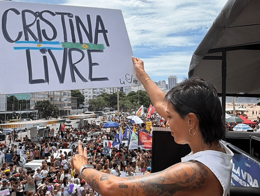 Asimismo, en el Día Internacional de la Mujer, Mendoza fue una de las oradoras en el acto “8M en las Calles” celebrado en la playa de Copacabana, Río de Janeiro, un encuentro masivo convocado como jornada de lucha, conmemoración y movilización, donde se reclamaron acciones contra el feminicidio y toda forma de violencia, más fondos para políticas públicas y garantías de autonomía, dignidad y justicia para las mujeres.