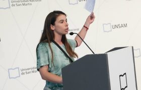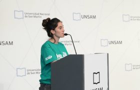 La Asamblea Universitaria, que elige autoridades cada cuatro anos, es el maximo organo de gobierno de la Universidad. Esta integrada por los miembros titulares del Consejo Superior y de los Consejos de Escuela, con representacion estudiantil. Ocho asambleistas estudiantiles hicieron uso de la palabra: Juan Lastiri, Luna Urizar, Tomas Dure, Facundo Lissieri y Tania Asiain (Construir UNSAM); Abril Lynch (La Mella); Lucia Lafon (MUI) y Florencia Sarmiento (La Caldera).