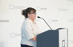 La decana del Instituto Dan Beninson (IDB), Carla Notari, fue la primera oradora entre 21 y propuso la formula Greco-Llois. Destaco los logros de la gestion saliente en distintos ambitos y afirmo que esa trayectoria posiciono a la universidad y consolido su desempeno politico-academico a lo largo de diferentes gobiernos.