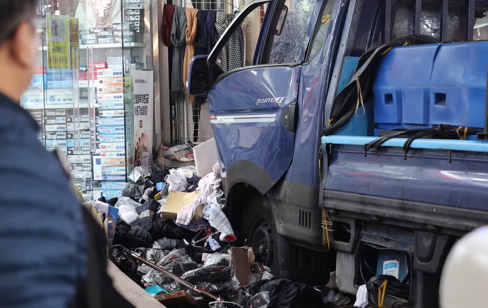 Imagenes difundidas por la agencia Yonhap mostraron al camion desplazandose a alta velocidad por un pasillo repleto de puestos antes de estrellarse contra una tienda y provocar que la gente huyera.