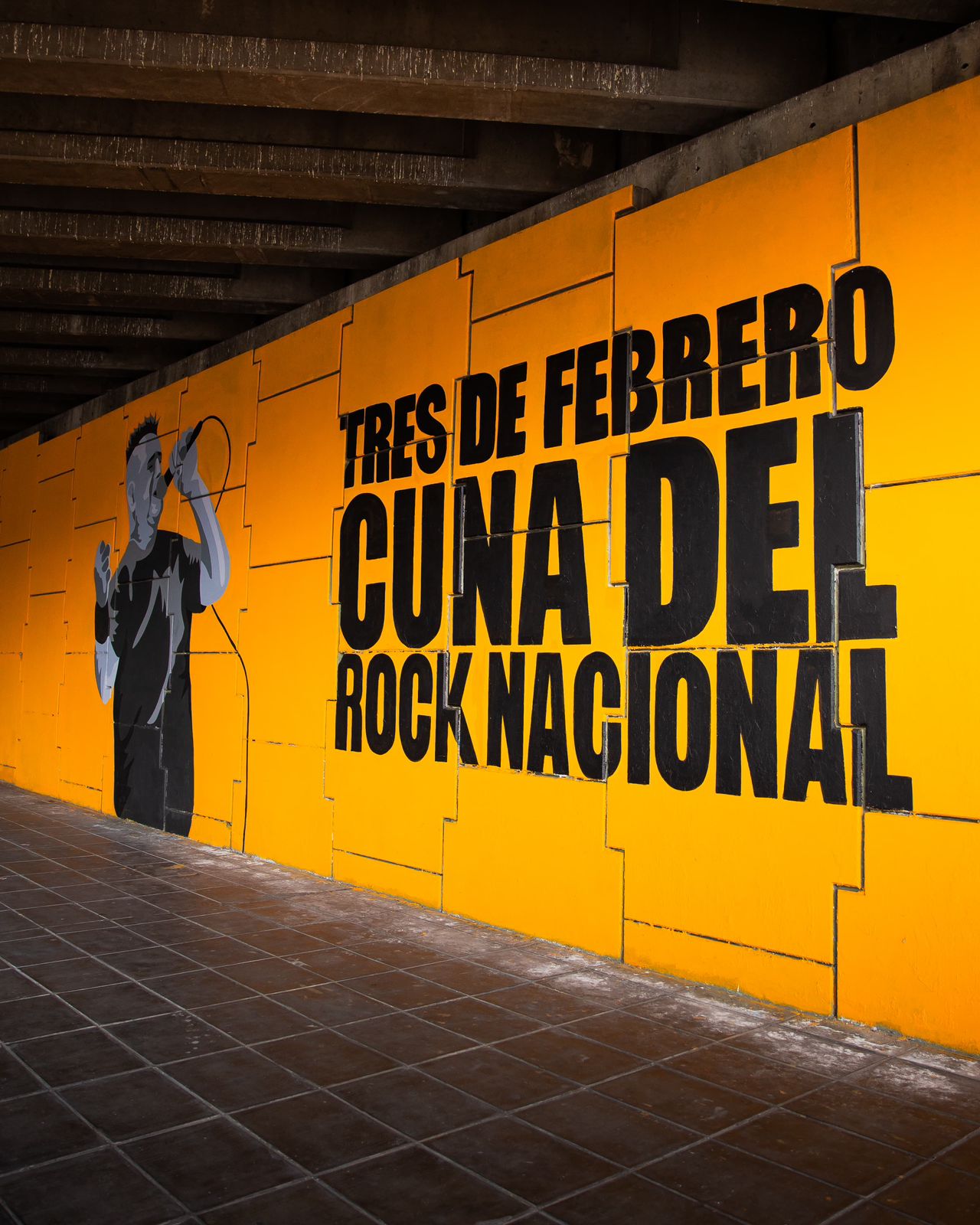 El mural, pintado por artistas de la EMAC, está dividido en dos secciones. Una de ellas está dedicada a la Ruta del Rock, un museo al aire libre con distintas estaciones en los barrios que recorre la trayectoria de bandas y músicos vinculados al distrito, entre ellos Tanguito, Ricardo Iorio, Sumo, Los Piojos y Divididos.