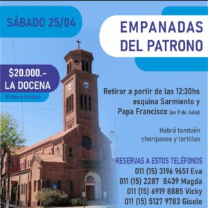 En la parroquia San Marcos Evangelista se celebrará este sábado la fiesta del patrono. Eva Cirillo informó que, como todos los años, se prepararán empanadas; los pedidos deben realizarse a los números que figuran en el flyer.
