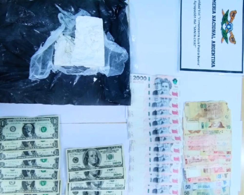 Al detenido le incautaron una billetera con mas de 34.000 pesos y 615 dolares, un telefono celular y un sobre de papel madera con una direccion de la localidad de Caleta Olivia, en la provincia de Santa Cruz.