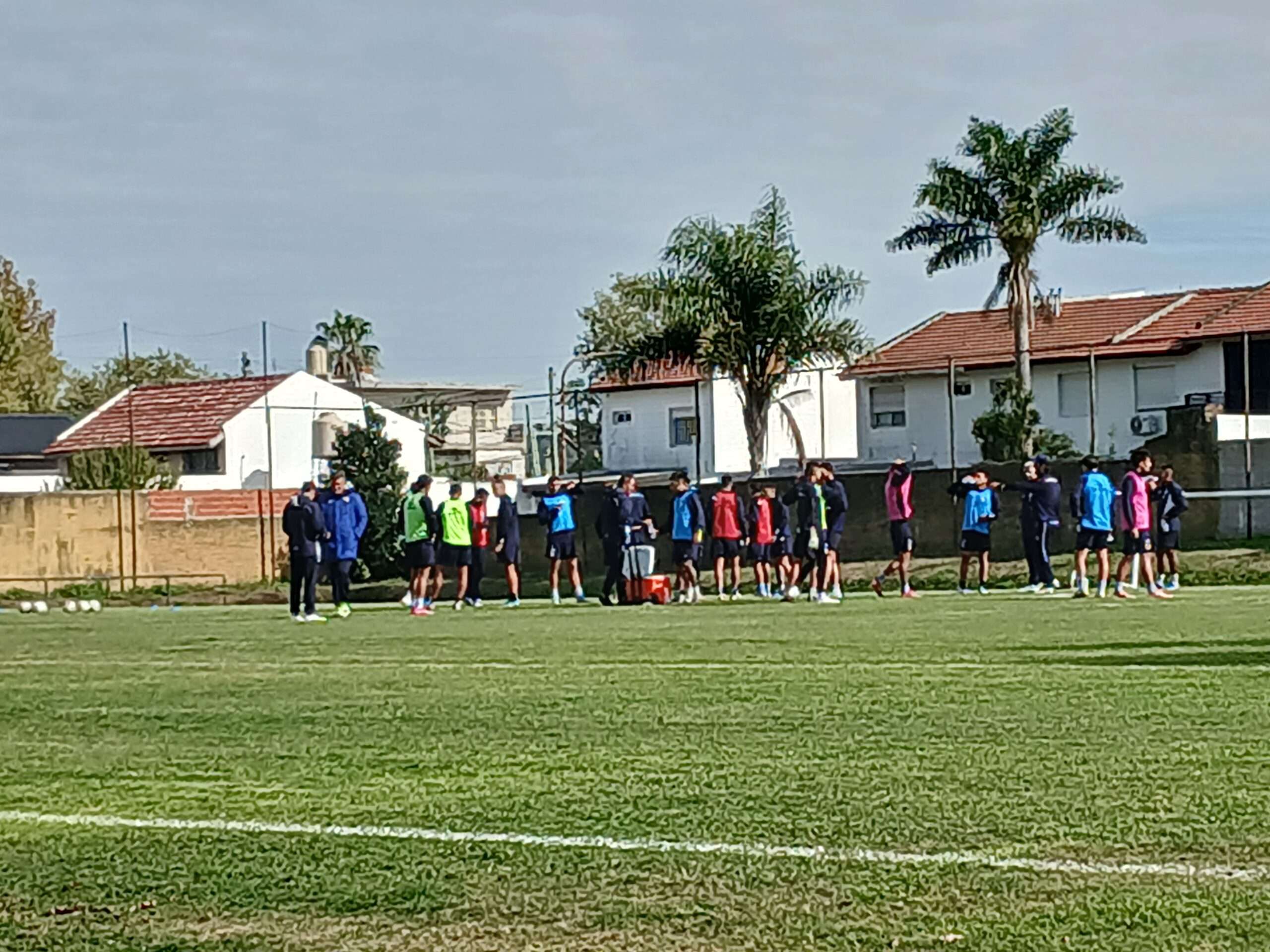 La actividad se desarrolló con el plantel dividido en tres grupos de seis y uno de cinco jugadores, más dos comodines con pechera rosa, en un trabajo dinámico orientado a la circulación, la presión y la recuperación de la pelota.