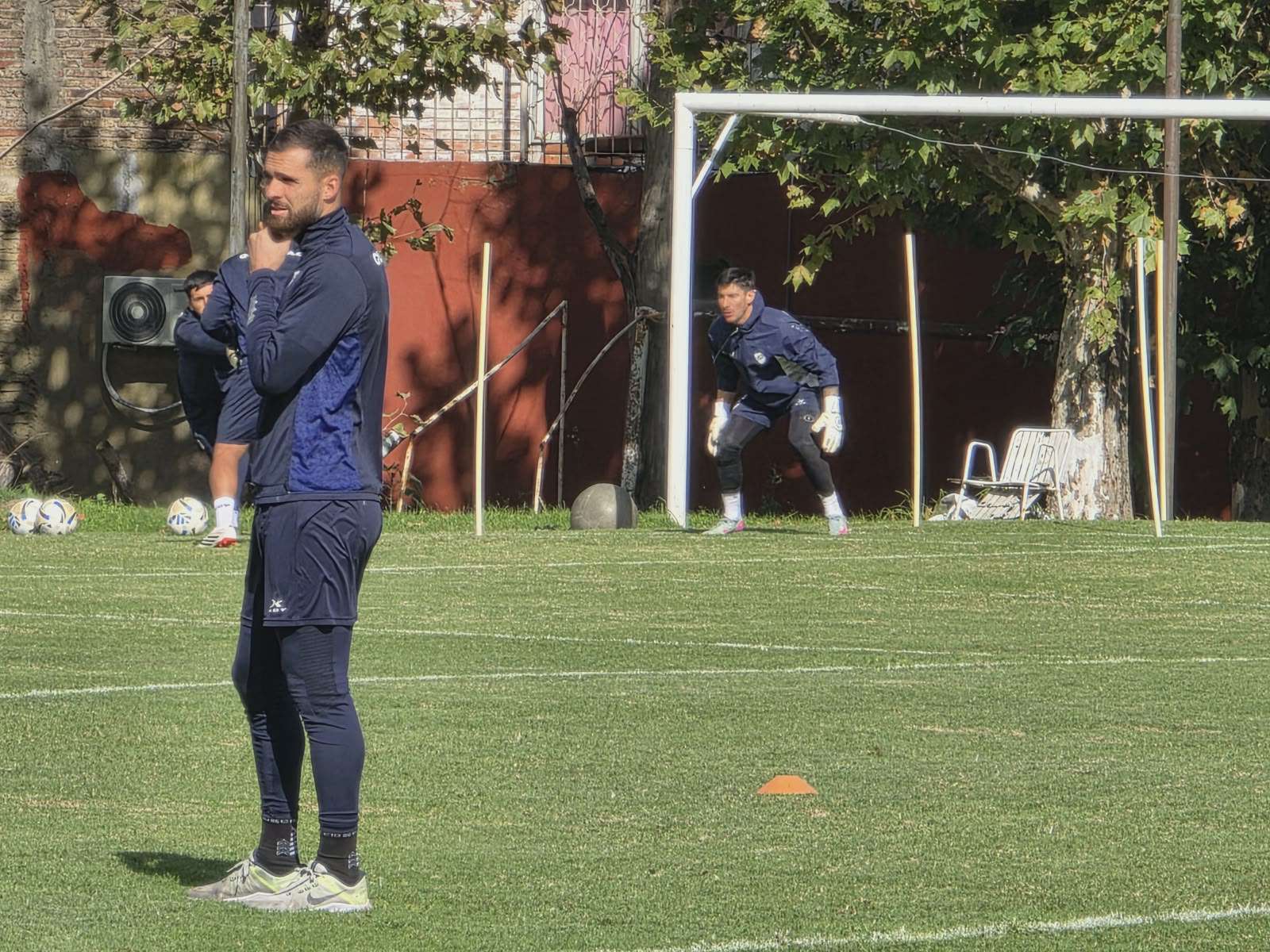 En el trabajo específico de arqueros participaron Gonzalo Marinelli, que sigue en recuperación por una lesión muscular, Joaquín Canadell y el juvenil Mateo Rodríguez.