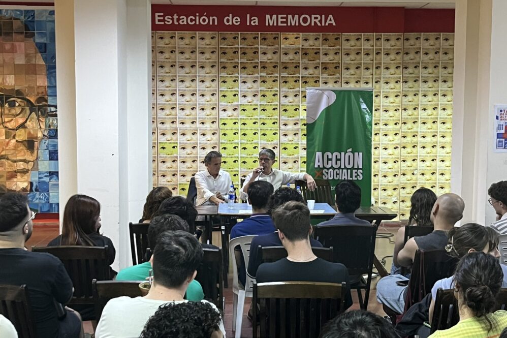 Ambos participaron invitados por estudiantes agrupados en Accion Sociales, la conduccion politica de la facultad, para dialogar y reflexionar en el marco del 80 aniversario del 17 de octubre y del Dia de la Militancia Peronista.
