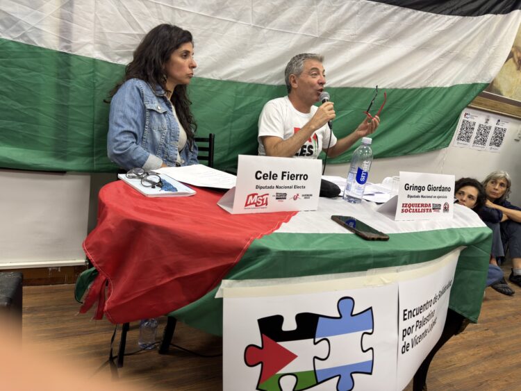 El pasado miercoles, el Sindicato de Trabajadores Municipales de Vicente Lopez recibio a la diputada nacional electa Celeste Fierro, del Frente de Izquierda, y al legislador nacional Juan Carlos Giordano, en un encuentro centrado en la situacion en Palestina.