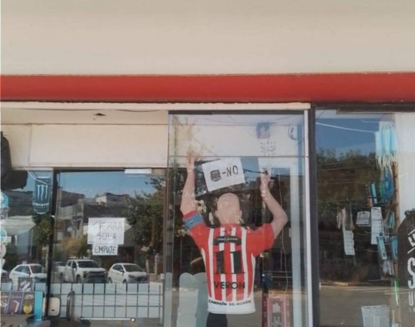 En 9 de Julio, provincia de Buenos Aires, un socio de Estudiantes replico la protesta en el frente de su comercio: coloco un maniqui que representa a Juan Sebastian Veron en su etapa de jugador, con una pancarta que muestra el logo de la AFA y un “NO” al lado, reeditando el gesto de dar la espalda al campeon Rosario Central.
