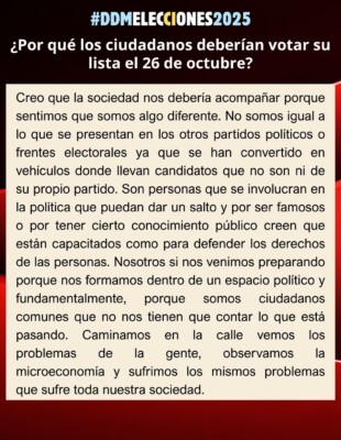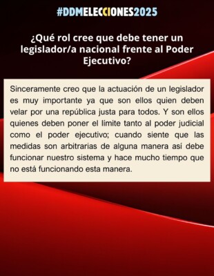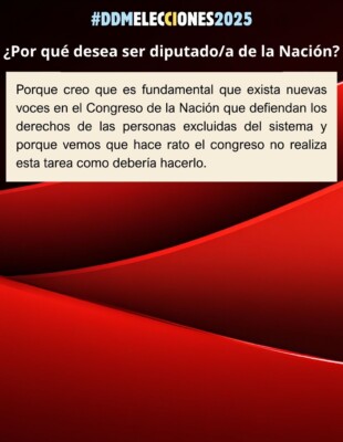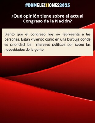 El aspirante a tener un lugar en la Cámara Baja, comentó que en dicho espacio nacional no se “representa a las personas” sino que “están viviendo como en una burbuja”. Por eso, consideró que los Diputados deben “velar por una República justa para todos y poner el límite al Poder Judicial y Ejecutivo”.