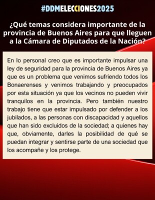 En estas elecciones legislativas nacionales, Mollard va por la provincia de Buenos Aires y en este sentido, señaló que la seguridad es uno de los temas que debe ser tenido en cuenta: “Es un problema que venimos sufriendo todos los bonaerenses y estamos preocupado por esta situación”.