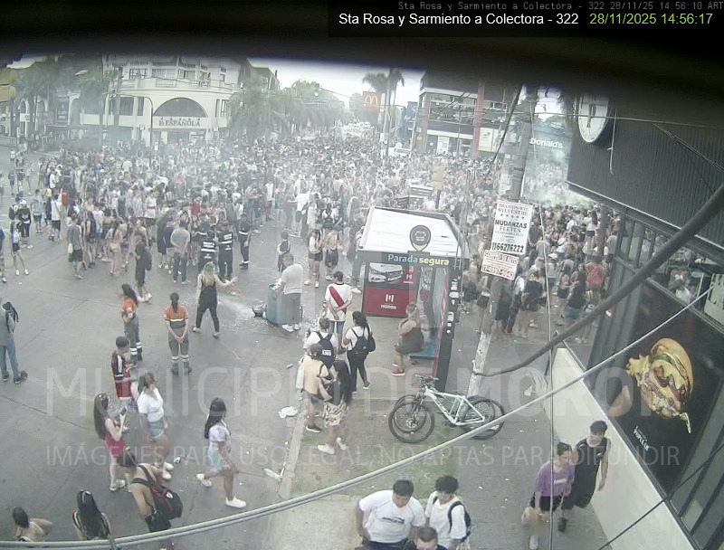 La convocatoria, que reunio a alumnos de 5 ano de escuelas del distrito, se realizo en la interseccion de Santa Rosa y Sarmiento, un punto historicamente elegido para este tipo de encuentros. La concentracion comenzo alrededor de las 13:00 y, segun el seguimiento del Centro de Monitoreo, el area fue completamente liberada por el personal municipal a las 16:35.