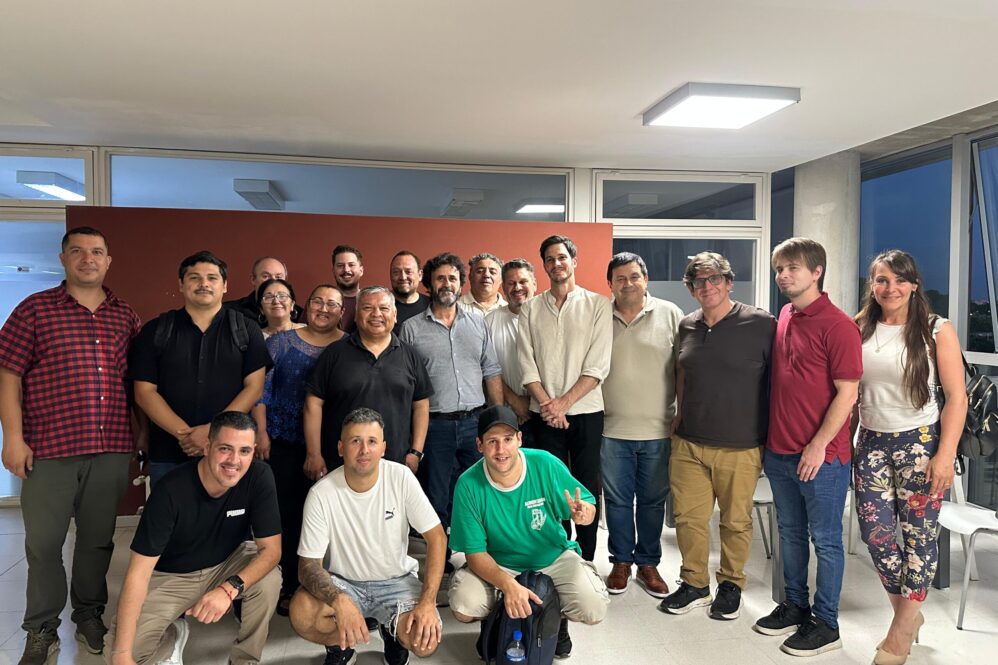 El secretario general del Sindicato de Trabajadores de la Industria de la Alimentación (STIA), Sergio Escalante, y el empresario Diego Achilli, de Helados Los Amores, inauguraron la semana pasada el ciclo «Diálogos Productivos» en la Universidad Nacional de San Martín.