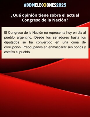 En diálogo con El Diario de Malvinas, García argumentó que quiere ingresar a la Cámara baja para “representar al pueblo argentino de una forma en la que nunca fue representado”. Sobre su actual funcionamiento, consideró que tanto “los senadores y diputados se han convertido en una cuna de corrupción”.