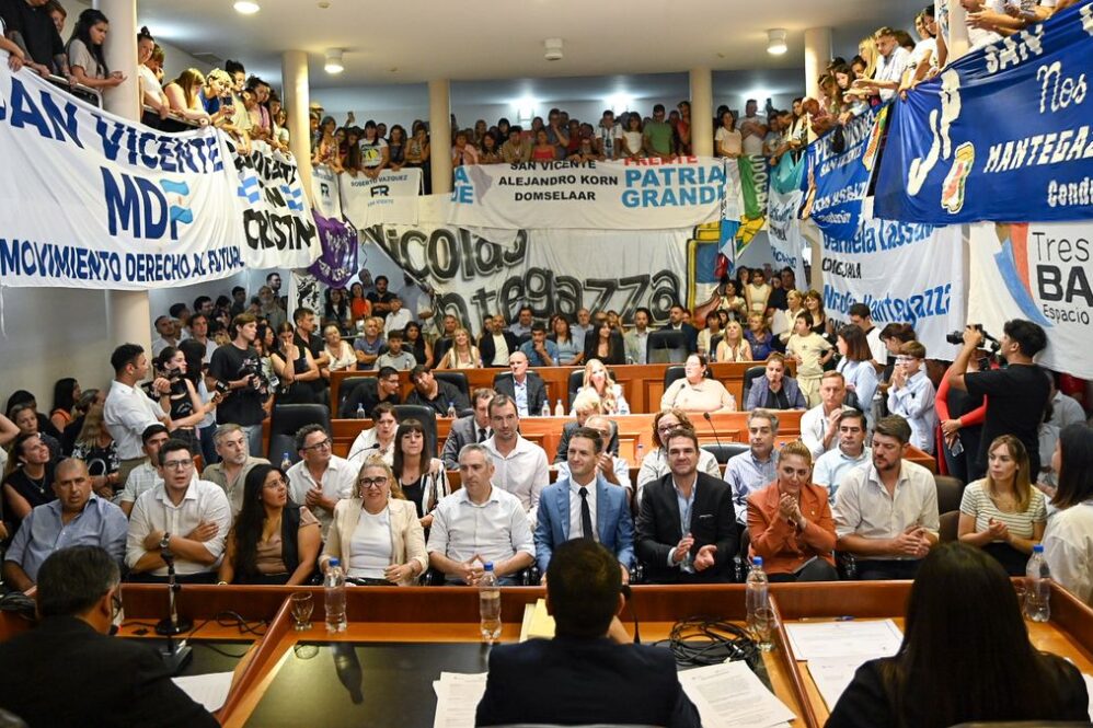 En la última sesión del Concejo Deliberante de San Vicente se registró una sola ausencia entre los concejales electos: Ignacio “Nacho” Contreras, quien figura como integrante del bloque La Libertad Avanza. Además del registro de asistencia, el texto incluye una referencia a la actividad deportiva local: Atlético San Vicente llegó a la final de la Copa de Campeones y aspira a contar con un predio propio.