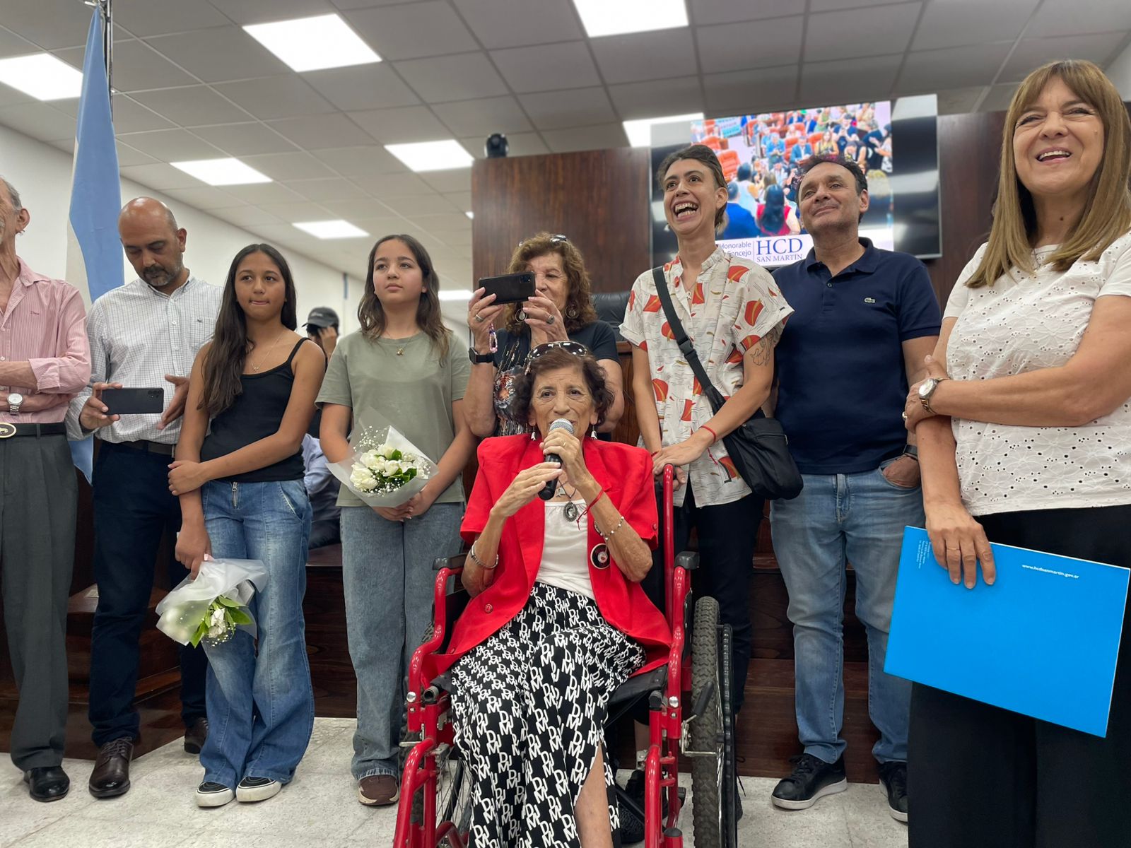 Durante la sesión se otorgaron distintos reconocimientos, entre ellos la distinción como personalidad destacada en derechos humanos a Evita Morales, vecina de Villa Concepción reconocida por su lucha por los desaparecidos del barrio, que registra el mayor número de secuestros durante la última dictadura en San Martín.