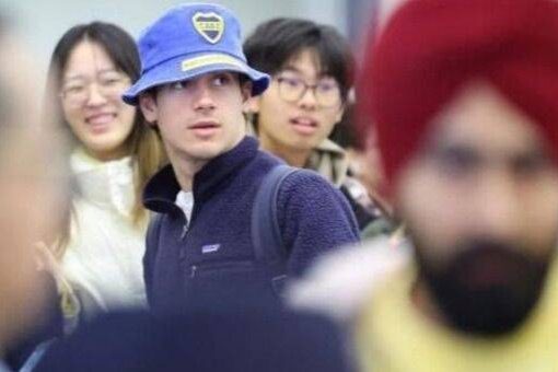 Colapinto llegó a China con piluso de Boca ante una multitud